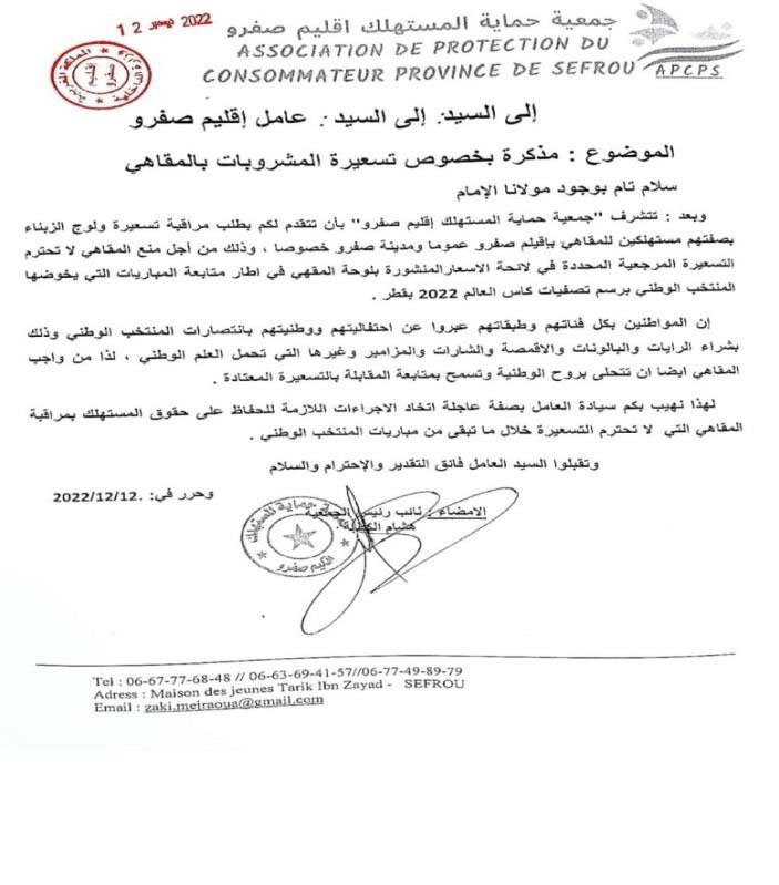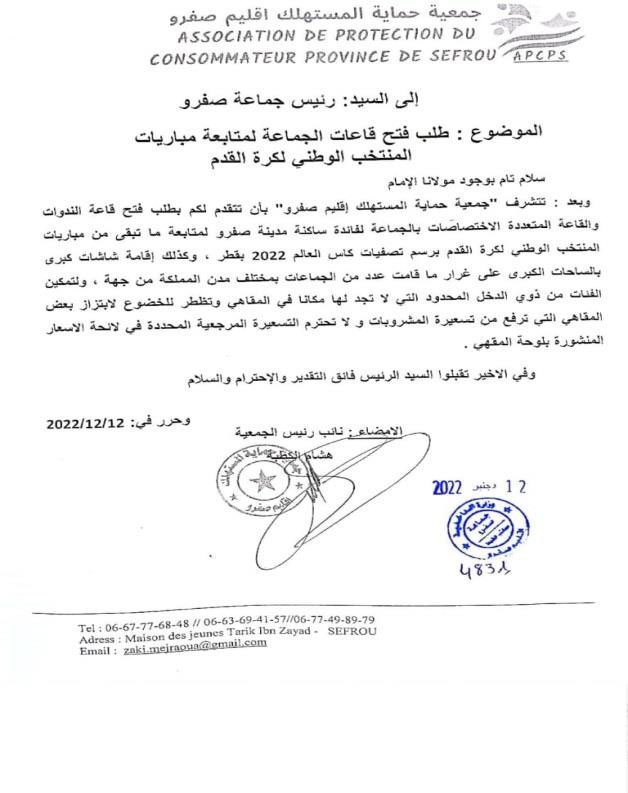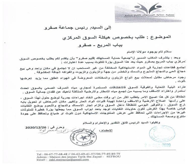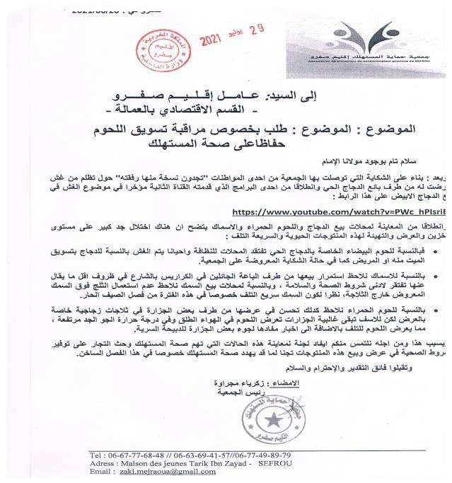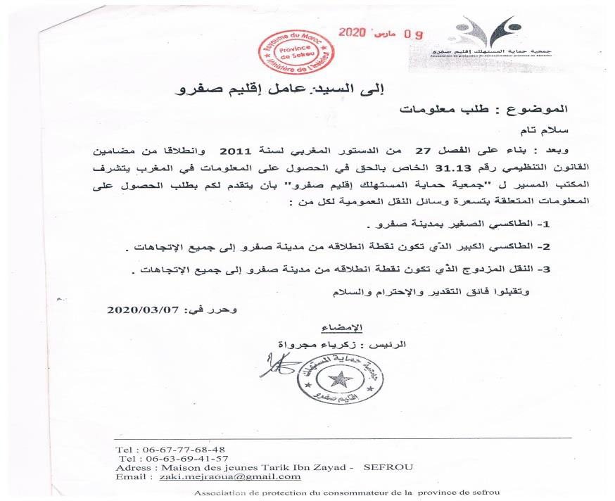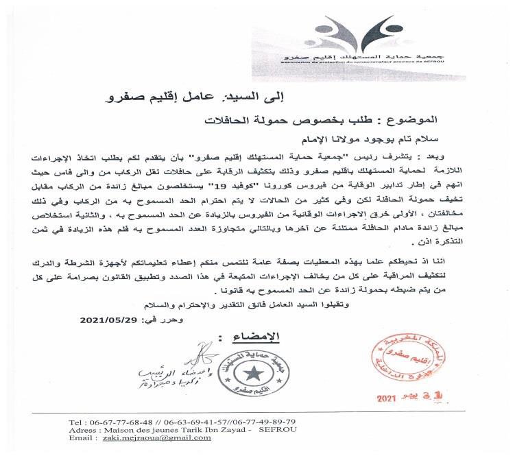عقدت الجمعية عقدة لقاءات مع السادة عمال الاقليم والكتاب العامون وباشوات المدينة وبعض رؤساء الجماعات الترابية المتعاقبين ورئيس القسم الاقتصادي بعمالة اقليم صفرو حول عدة مواضيع تهم حماية المستهلك وعلى راسها مشكل الدقيق المدعم وعداد سيارات الاجرة وتجاوزات سيارة الاجرة الكبيرة وجودة منتوجات المخابر ونقص وزن الخبز والمخابز التقليدية الغير مرخصة ونظافة المطاعم ومراقبة الماشية المخصصة لأضاحي العيد وغيرها من المواضيع التي تهم المستهلك المحلي لكن للأسف يبقى تجاوب المسؤولين جد محدود ، وقد كان أخر لقاء أجرته الجمعية هو الاجتماع الذي احتضنته عمالة اقليم صفرو يوم الثلاثاء 28 يناير 2020 ابتداء من الساعة الواحدة زوالا برئاسة السيد الكاتب العام للعمالة بحضور باشا المدينة ورئيس القسم الاقتصادي وممثل عن المكتب الوطني للسلامة الغذائية بمشاركة الجمعية وممثلين عن اتحاد الجمعيات النسيج الجمعوي بإقليم صفرو حيث ثمت مناقشة للمواضيع الآتية :